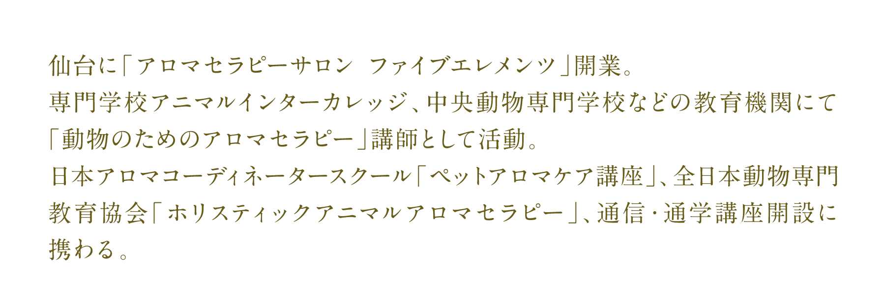 ●「Aromatherapy for Animals」Lecturer at Animal Inter College, Chuo Animal College.