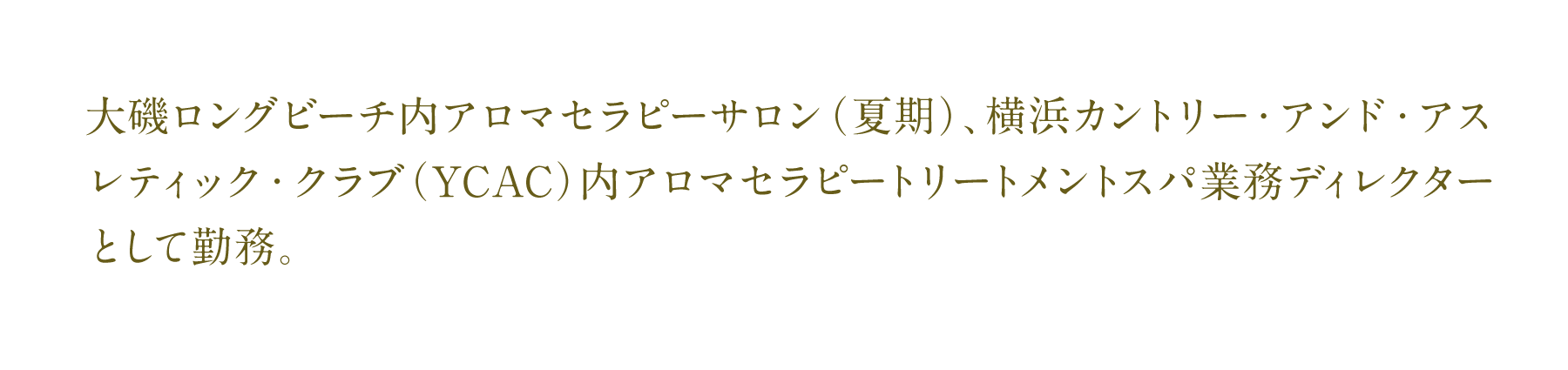 ● Director of the poolside spa at Oiso Long Beach Hotel and YCAC (Yokohama Country & Athletic Club).
